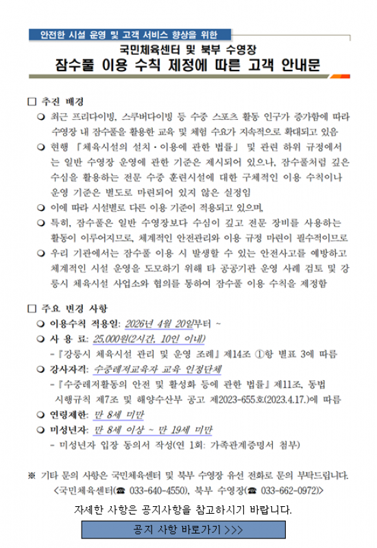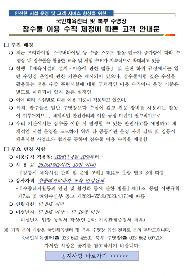 강릉시 공공수영장 잠수풀 이용수칙 안내